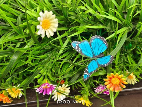 可以看到,iQOONeo11主摄拍出的画面整体清晰度高,5000万像素主摄解析力出色,能精准捕捉画面细节。花簇五彩斑斓的颜色,都呈现得鲜艳且真实,没有偏色现象。色彩饱和度恰到好处,既突出了视觉冲击力,又保持了自然感,可以满足日常记录和创作需求。