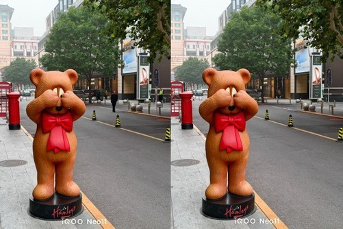 iQOONeo11开启超高分辨率后,建筑、人物细节提升