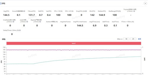 《和平精英》目前已经支持144帧模式,画面表现也相当稳定,开启后平均帧率达到143.8。如果想要更精细的操作手感,可以在游戏内将触控采样率调高,提供屏幕触控响应速度,让玩家的瞄准、拉枪更丝滑流畅。